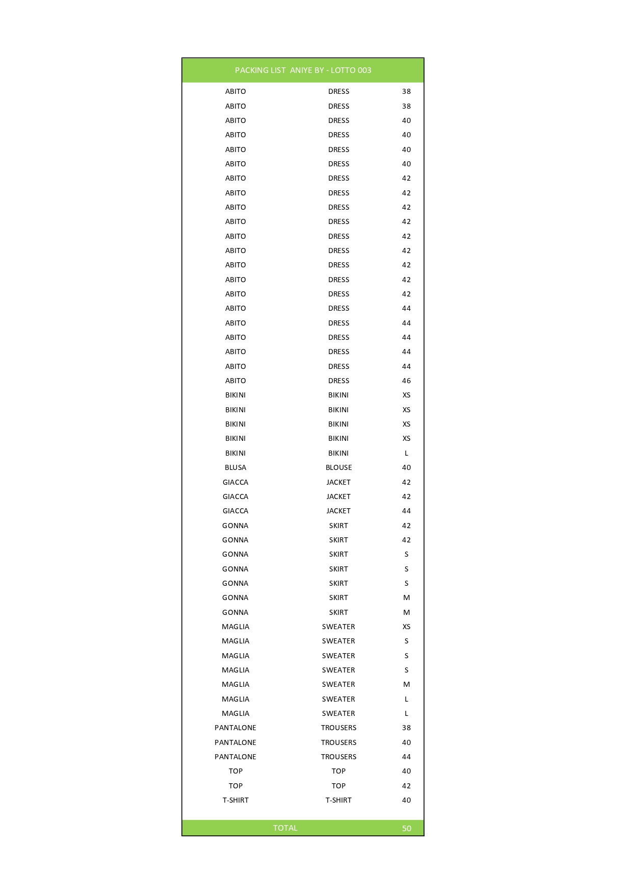 Numero pezzi50