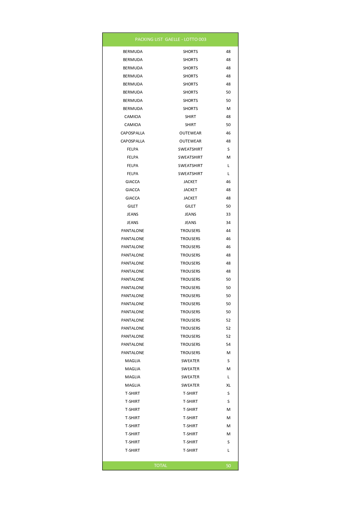 Numero pezzi50