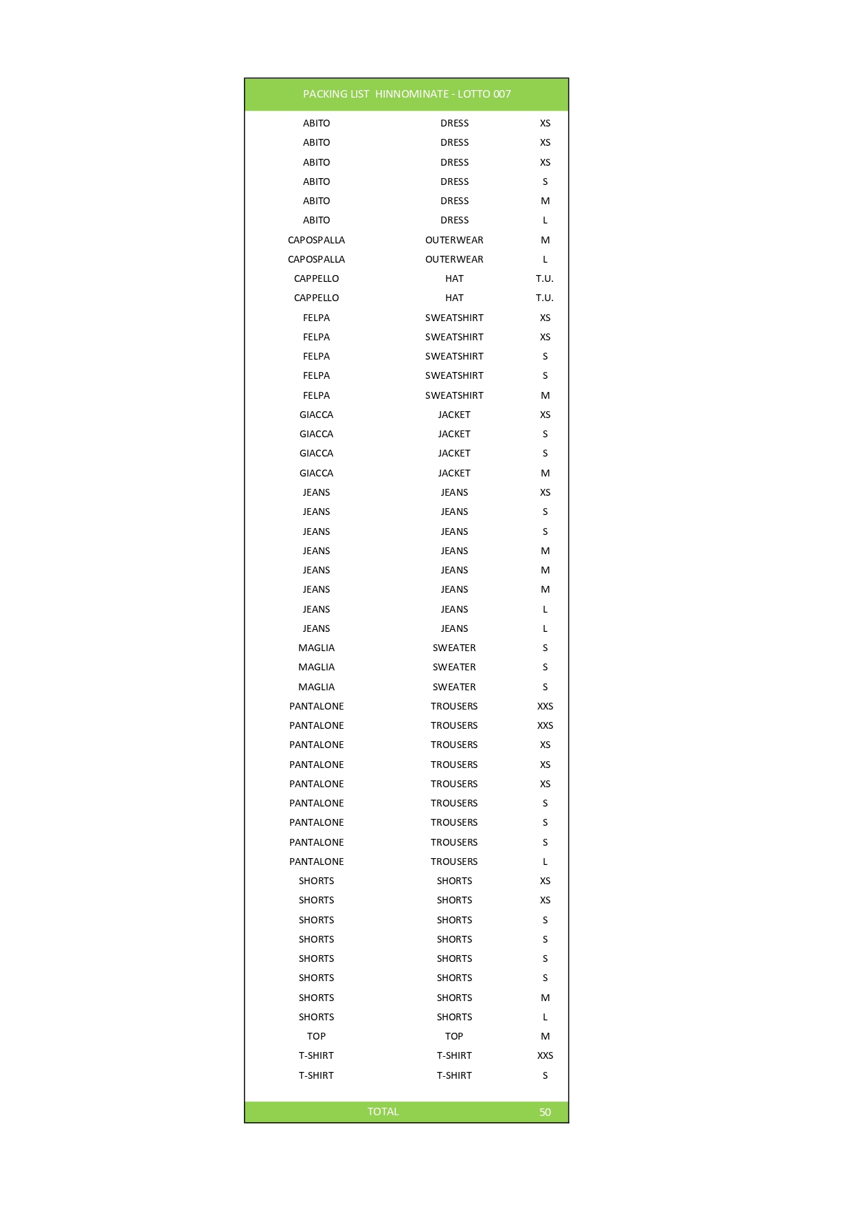 Numero pezzi50