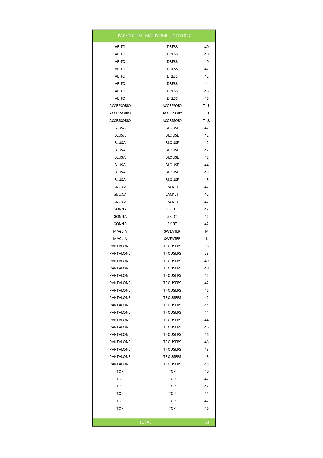 Numero pezzi50