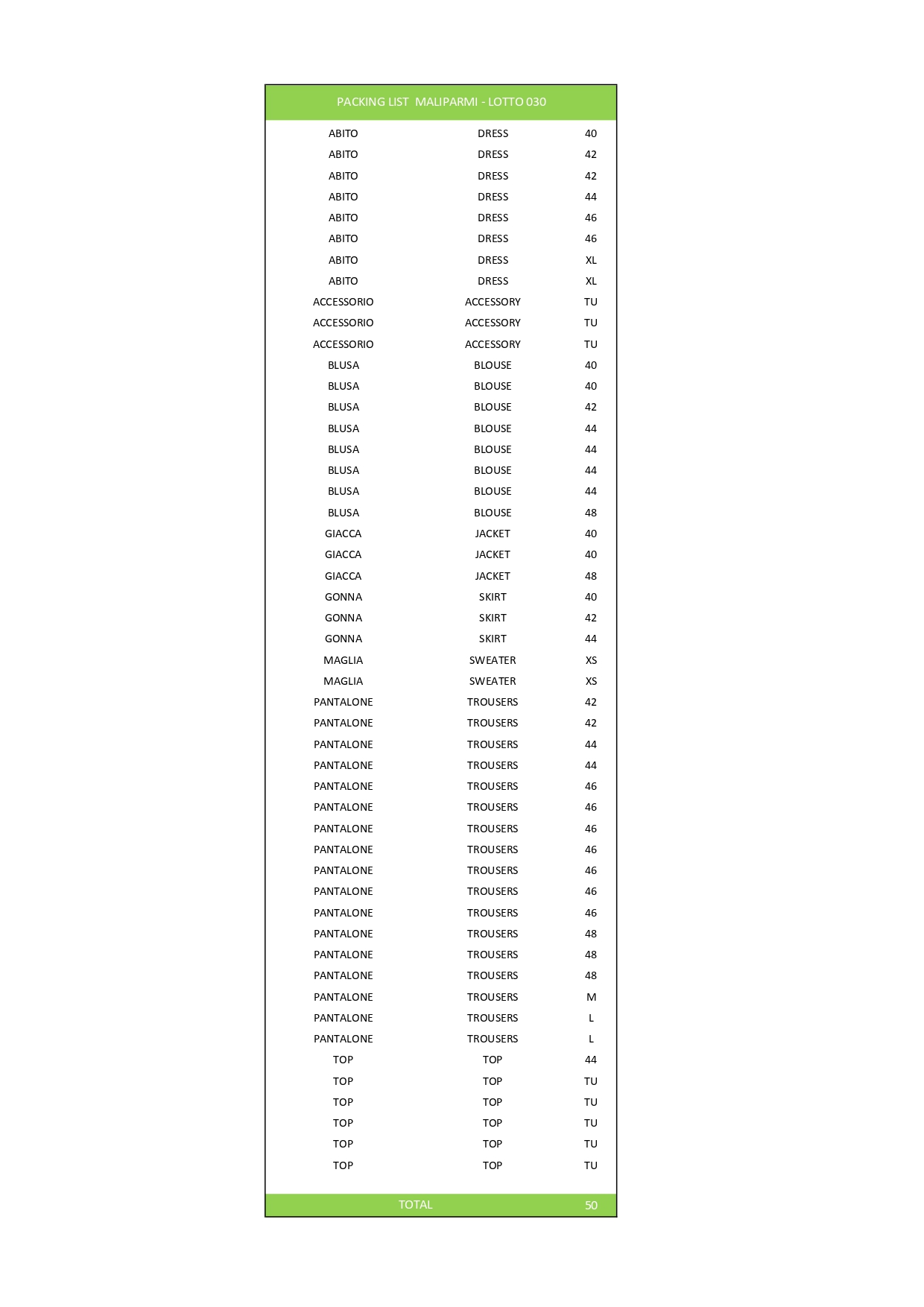 Numero pezzi50