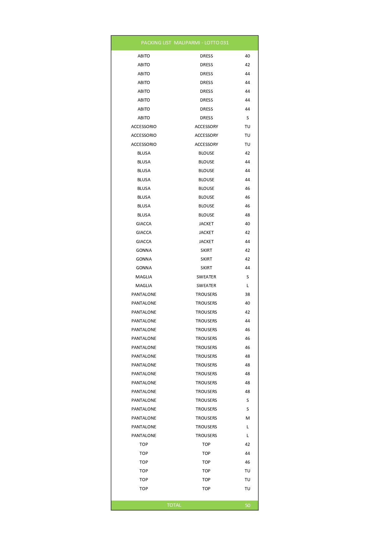 Numero pezzi50