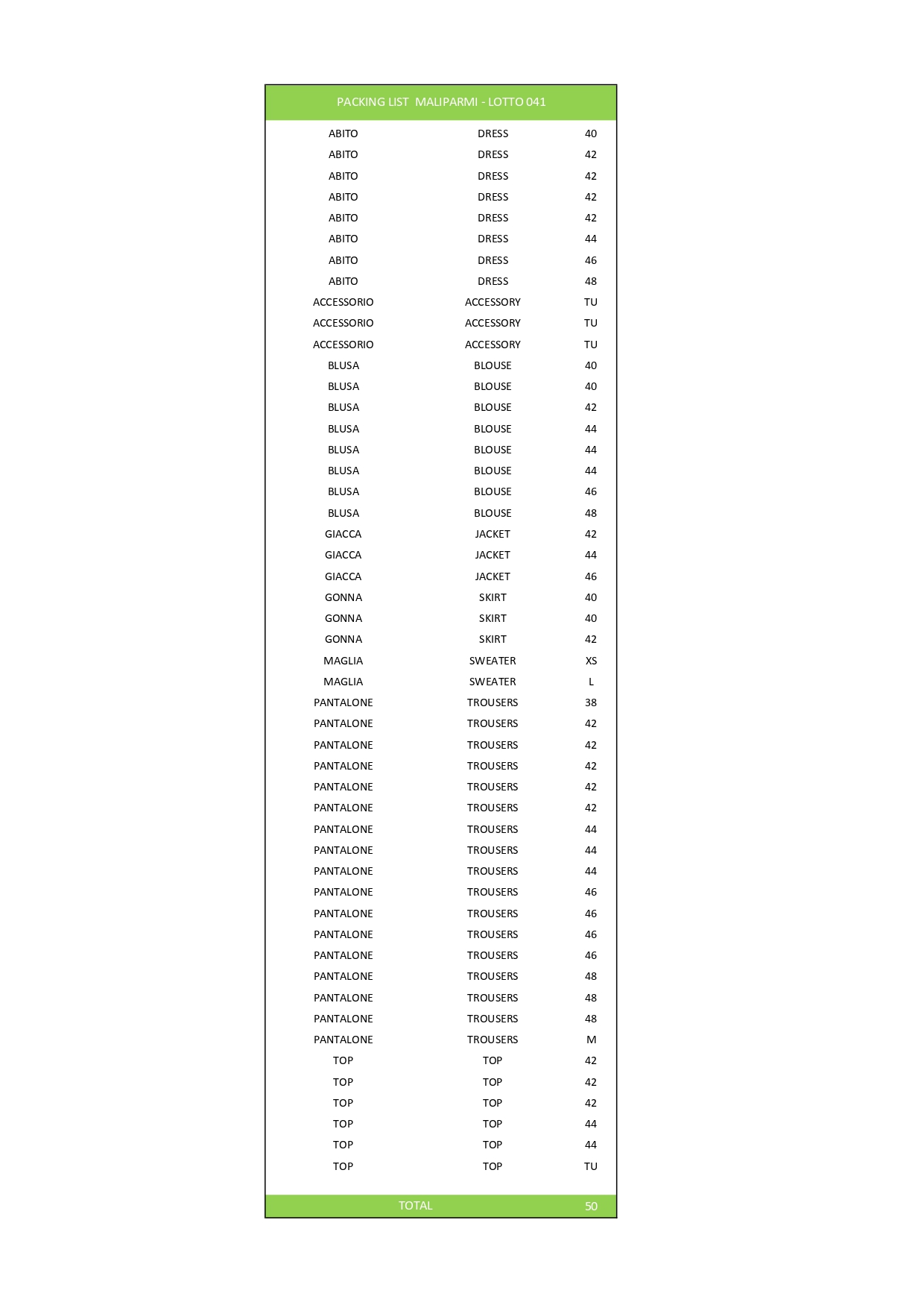 Numero pezzi50