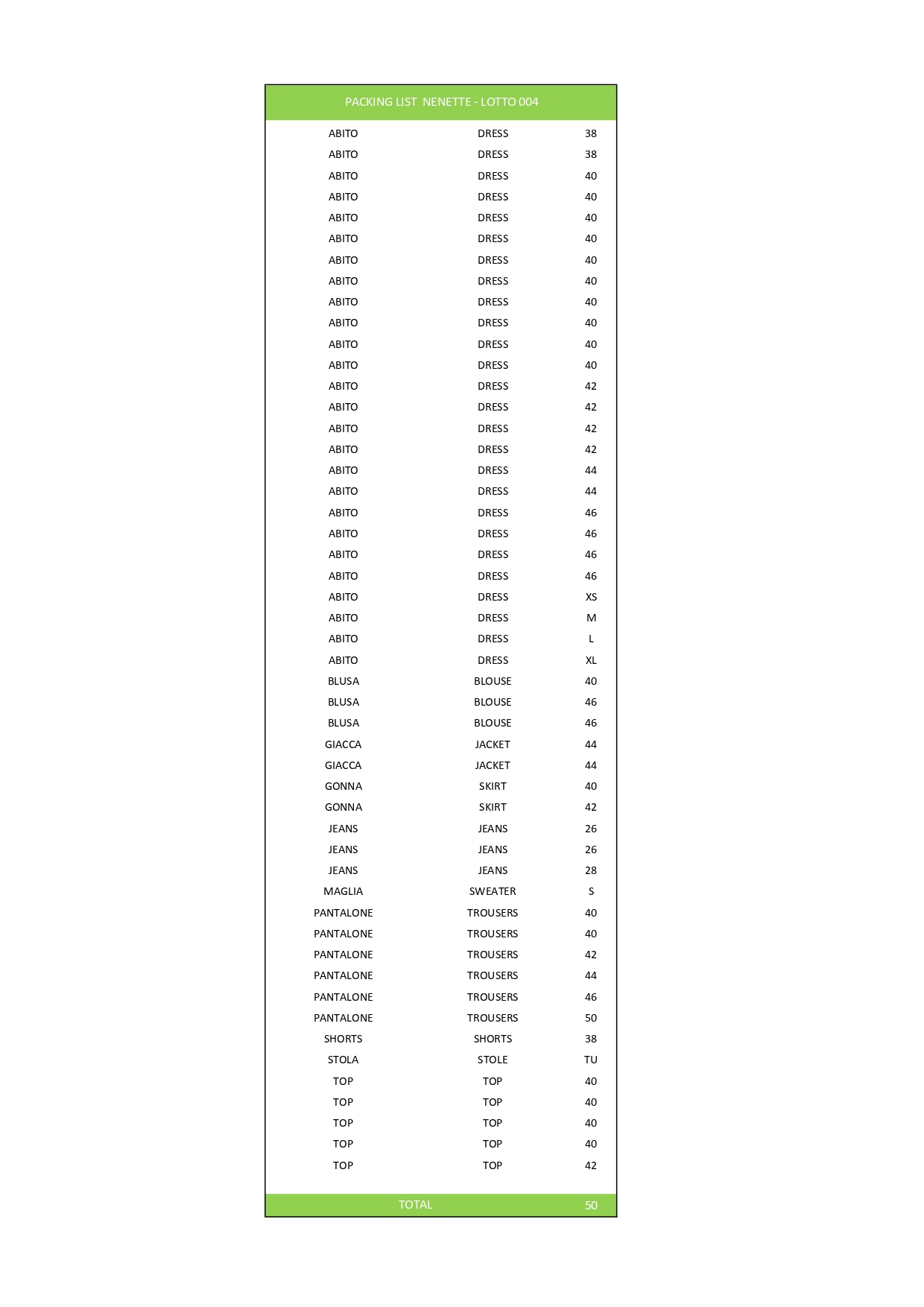 Numero pezzi50