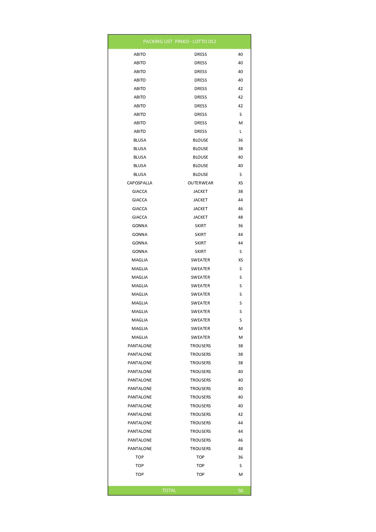 Numero pezzi50