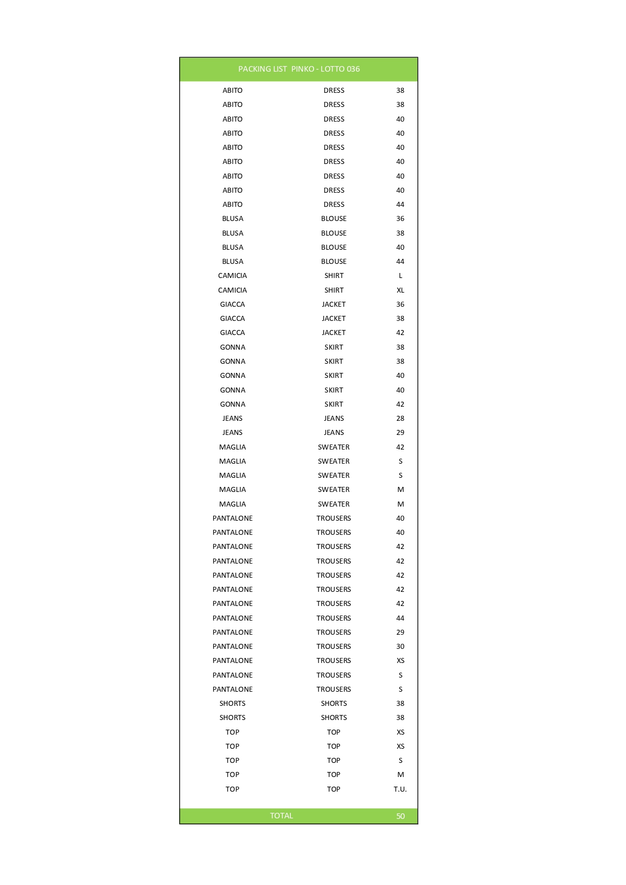 Numero pezzi50
