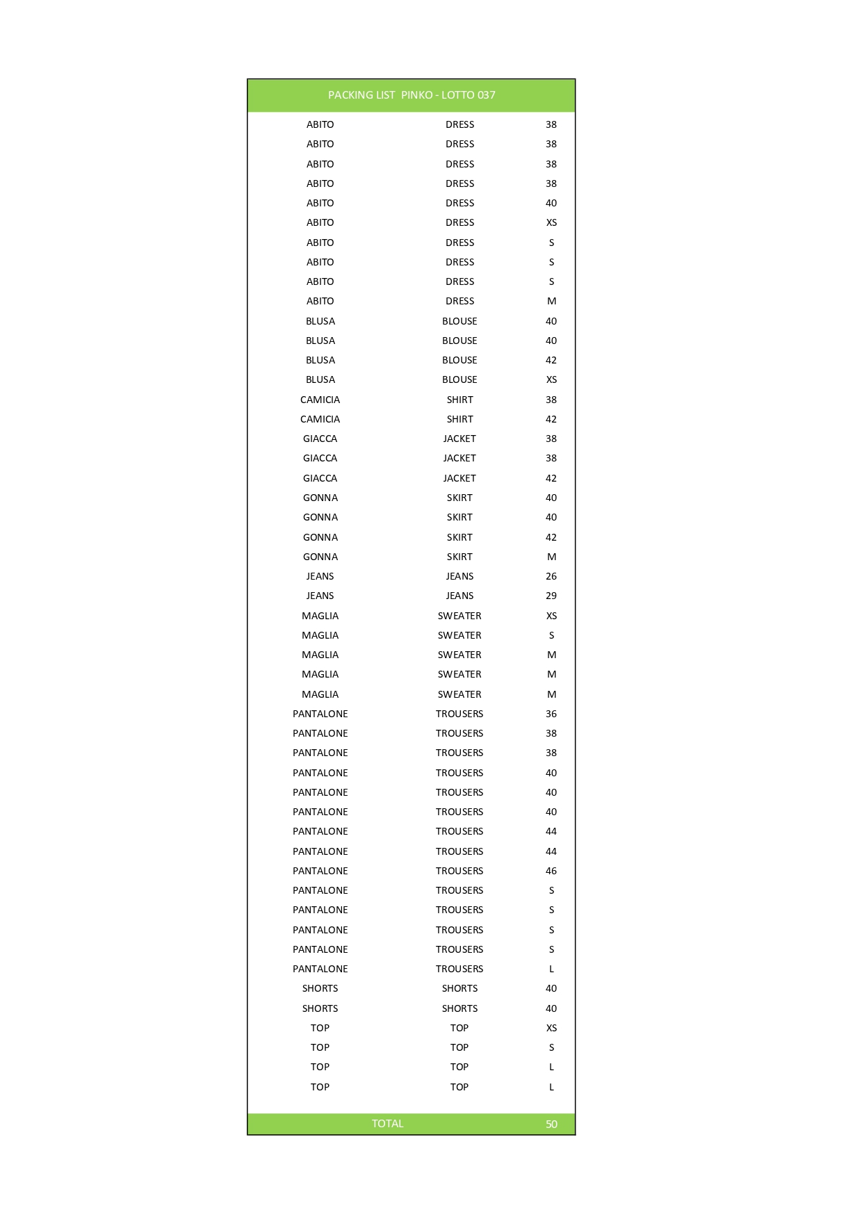 Numero pezzi50